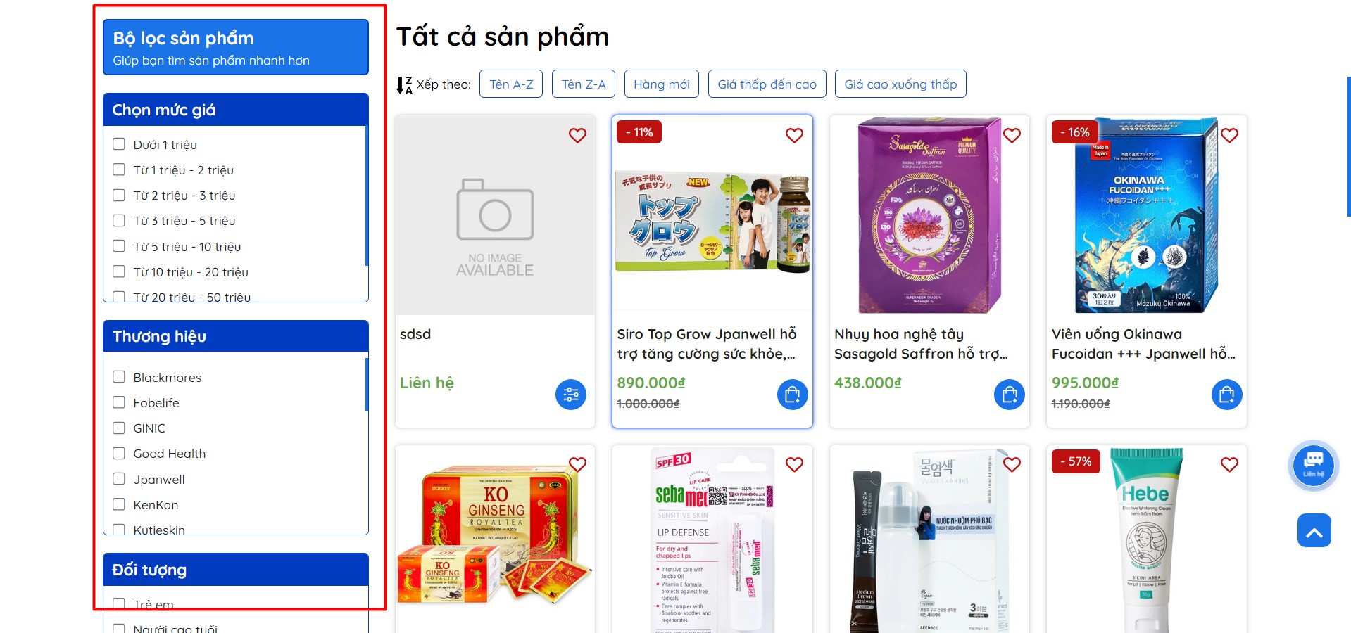 - Bảng giá