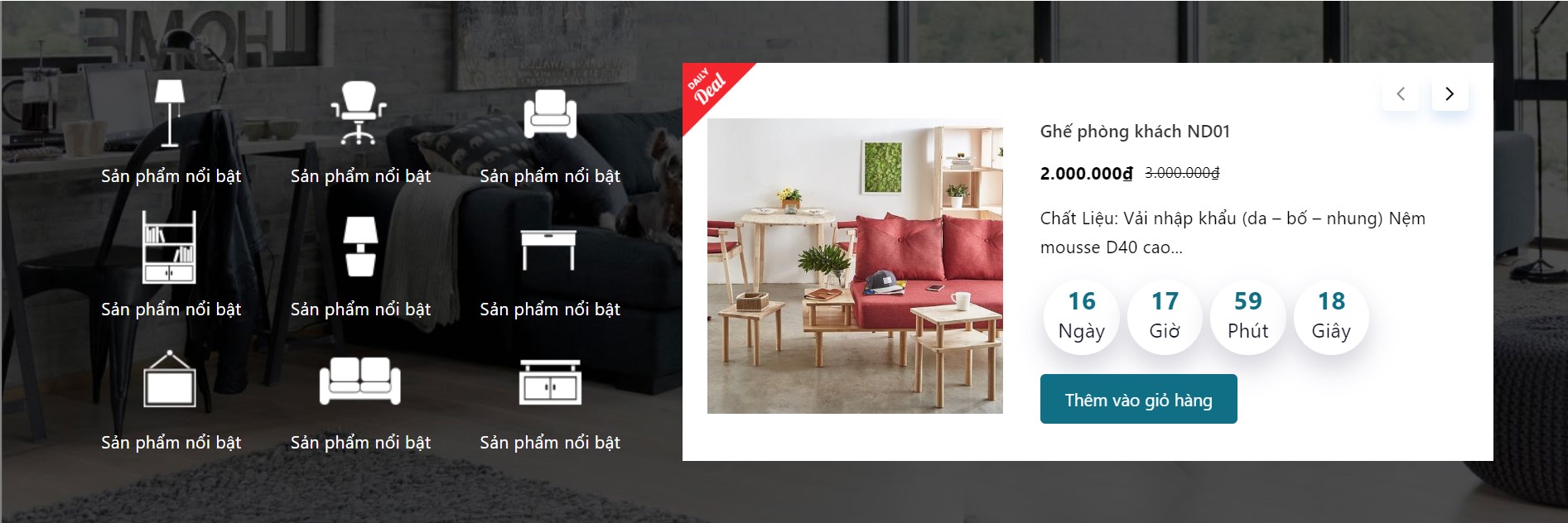 Template ND Nội thất là giao diện đẹp, hiện đại dành cho các website bán đồ nội thất, siêu thị nội thất gia đình, chuyên cung cấp...