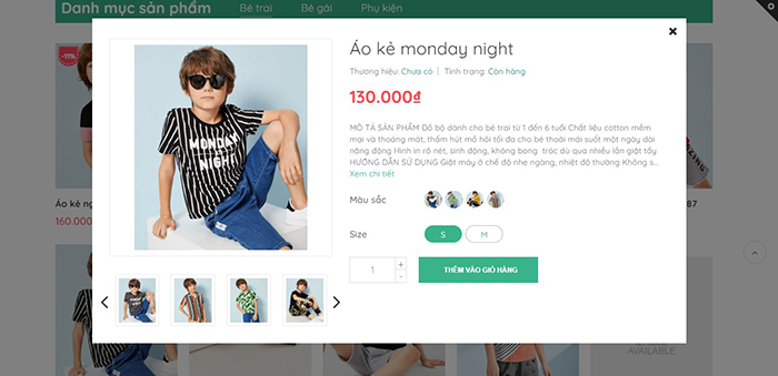 2. Tính năng xem nhanh, giúp khách hàng xem thông tin sản phẩm một cách đầy đủ và nhanh nhất, gồm các thuộc tính đã được cài đặt