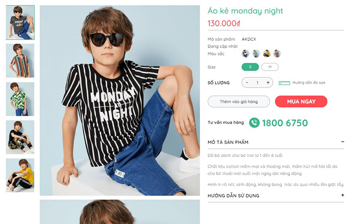 4. Trang chi tiết sản phẩm Hiển thị trực quan các thông số, thuộc tính của sản phẩm giúp khách hàng lựa chọn dễ dàng, chế độ trượt ảnh con mới lạ